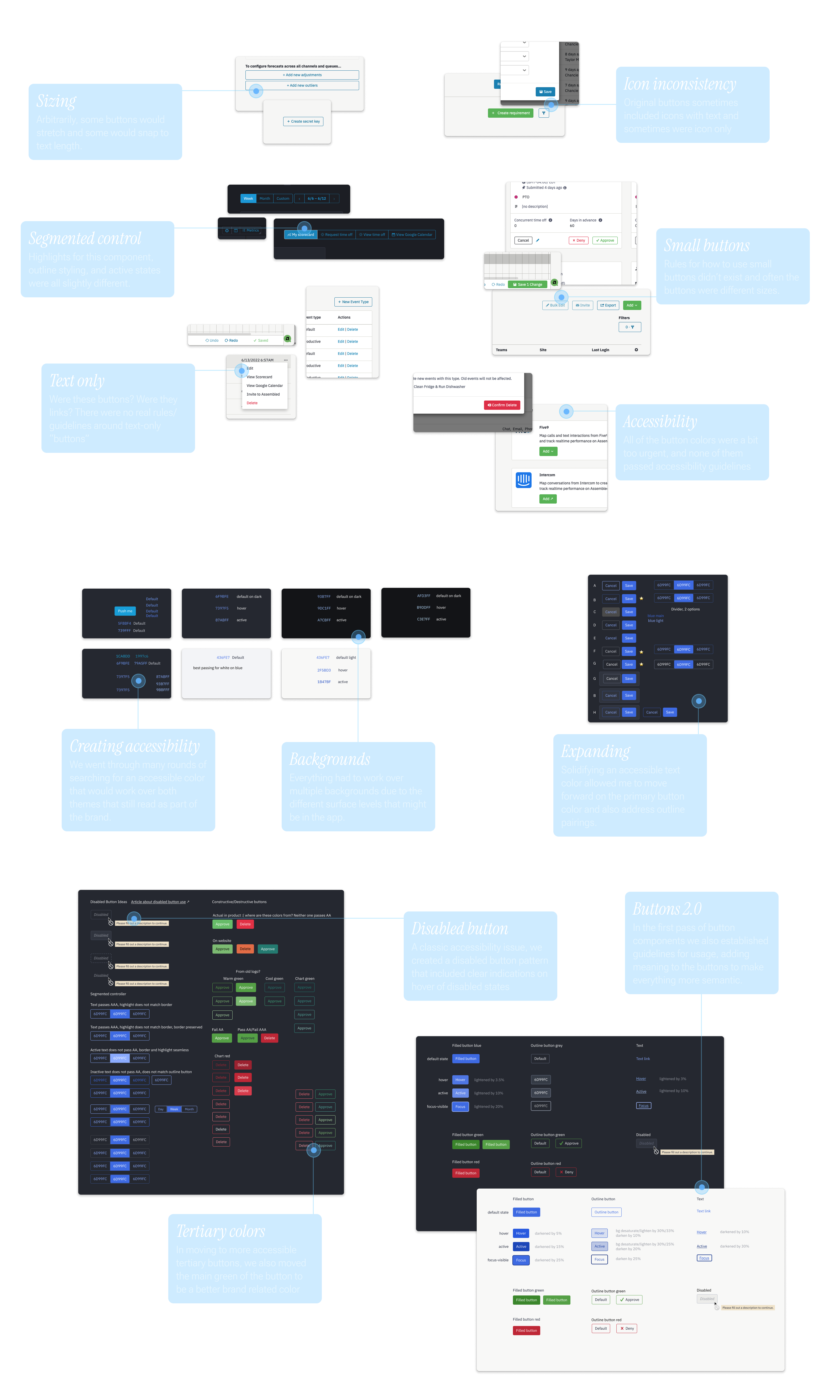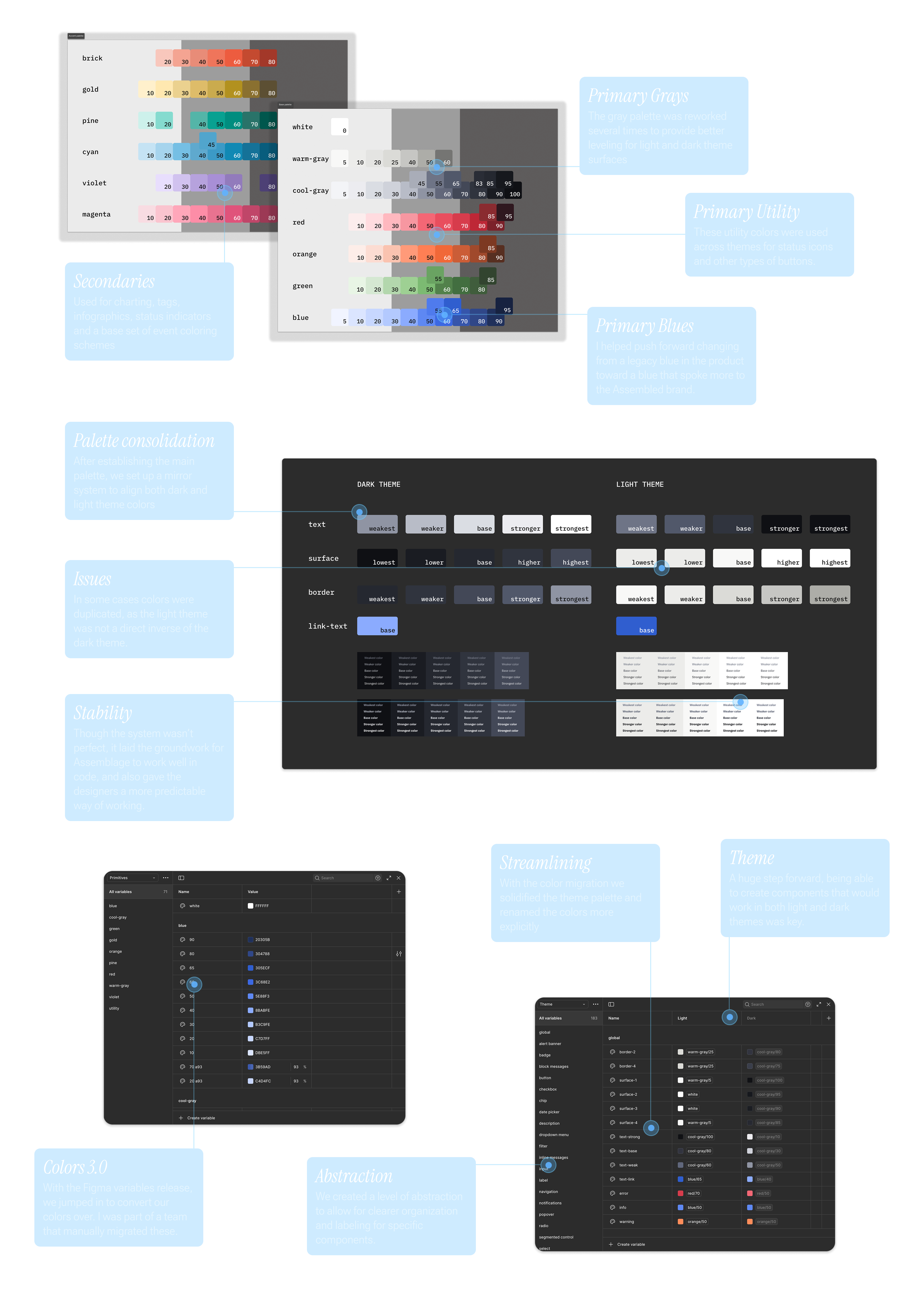 At Braintree, I kickstarted the very first design system, but at Assembled I got to use all of those discussion lessons learned. As the Chief Button Officer, I was often elbows deep in component configuration in Figma. Working closely with other designers and engineers, we were able to significantly move the product aesthetic to a more modern direction, and at the same time, create an organized, scalable, maintainable system.