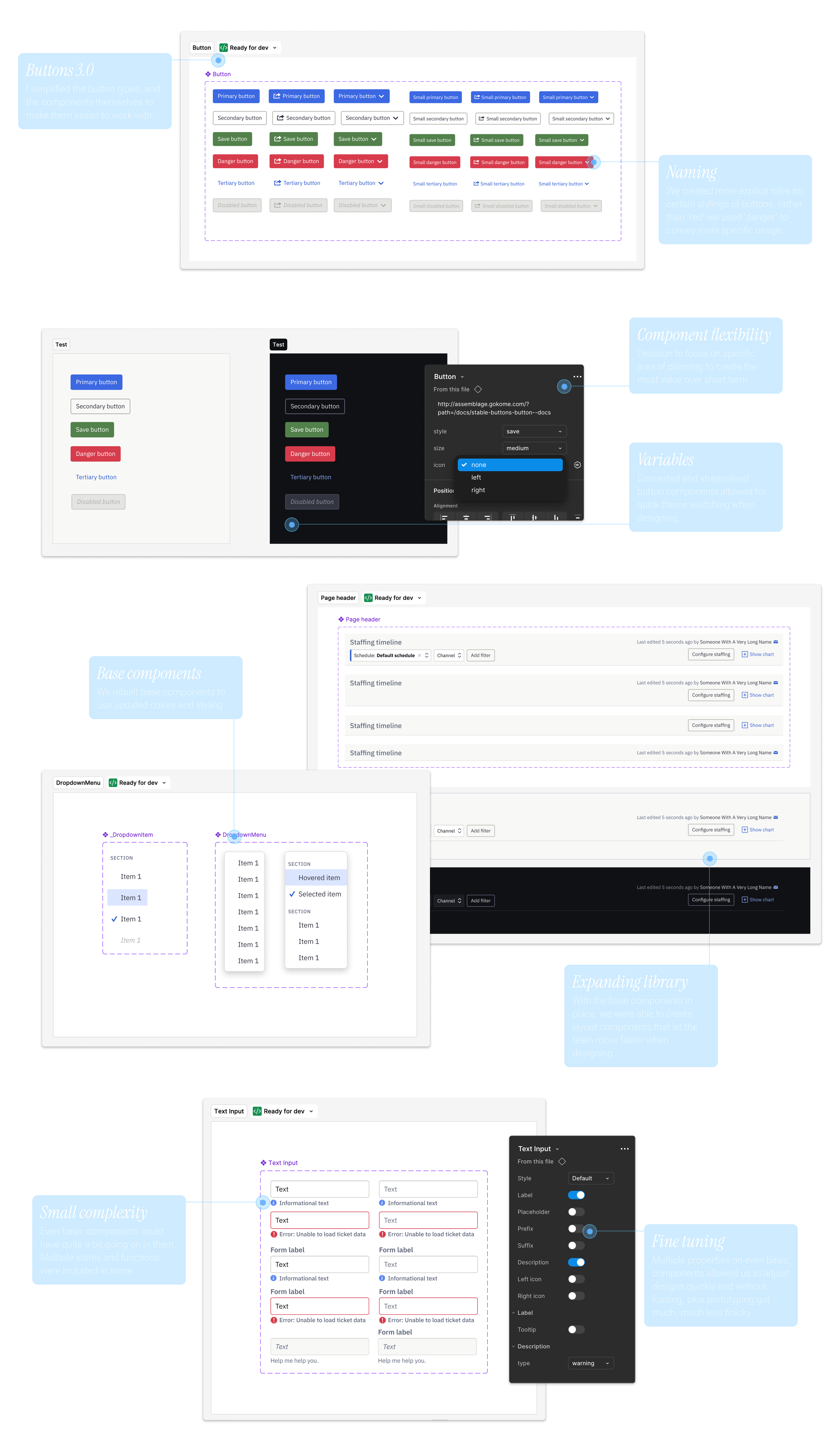 - Created and maintained easy to use components for designers and engineers that match 1:1